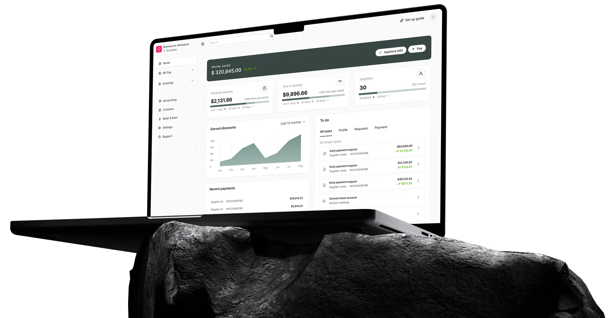 Earn discounts on supplier bills, sync with your existing finance stack, and support more suppliers, faster. All for free.